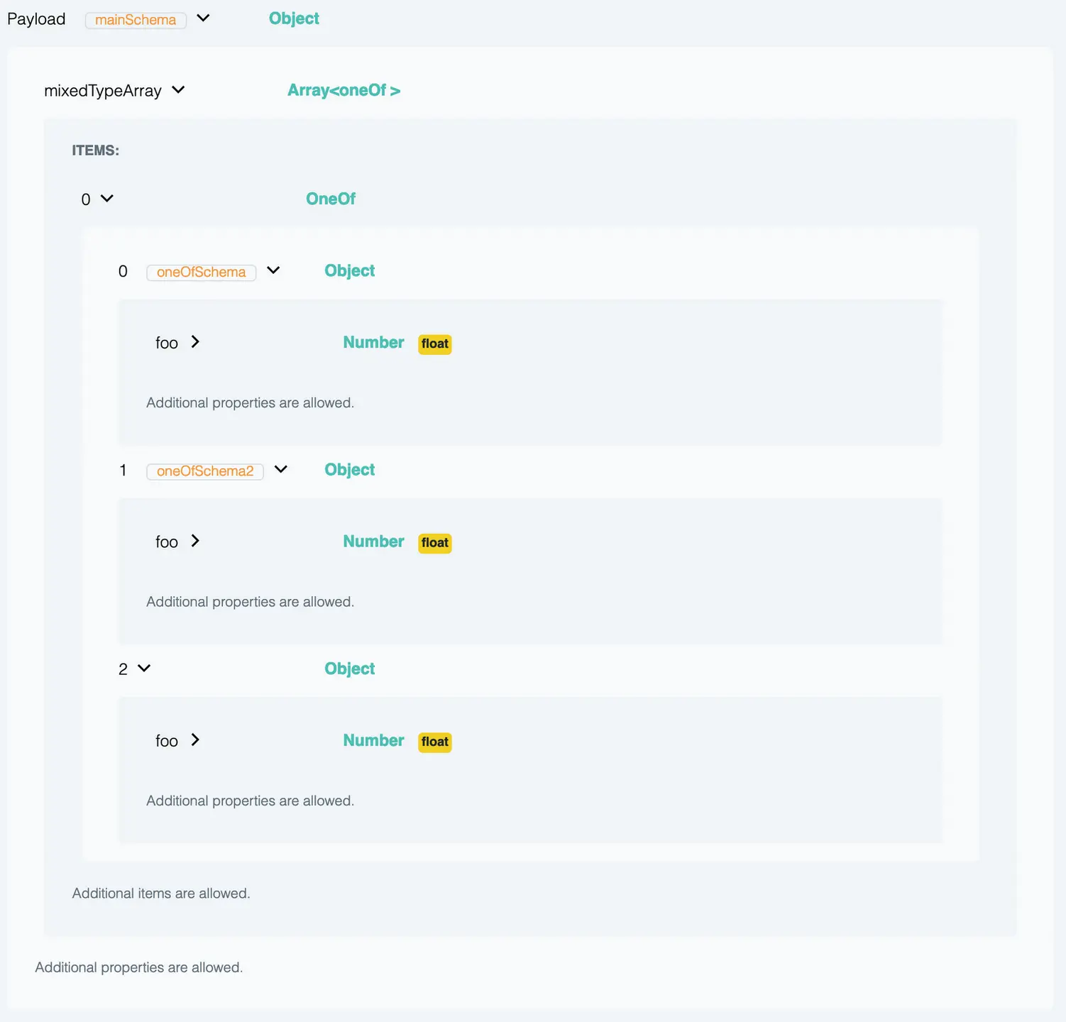 Notice how it is displayed in the below example, next to the first two mixedTypeArray property schemas.